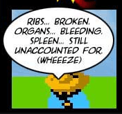 - A common punchline in Brewster Rockit involves Winky being attacked by an alien and screaming "Ah! My spleen!"