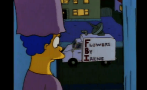 - The page image comes from The Simpsons episode, Bart the Murderer, with a government agency hiding out in a florist van. The florist's name: Flowers By Irene.