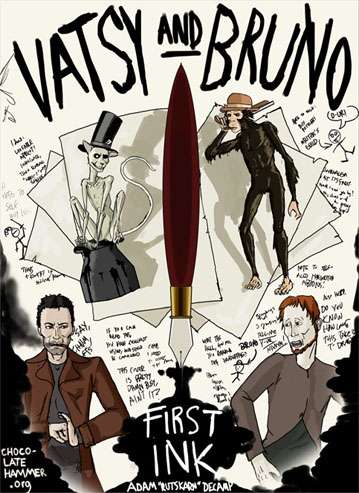 Vatsy and Bruno, written by Adam "Rutskarn" DeCamp and hosted on the website Chocolate Hammer, is a dark humor web series whose first episode, "First Ink", has recently[when?] reached completion. Each episode is to be written in serial format, with each weekly post being about three pages of text.