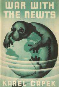 Karel Čapek segues from this point into short stories and newspaper clippings to tell of the eventual eponymous war with the Newts, as they come to be called, while sharply satirizing everything from Nazism to Hollywood. Oh, and he seemingly foretells the Munich Agreement, except Czechoslovakia is China, and Germany is the Newts.
