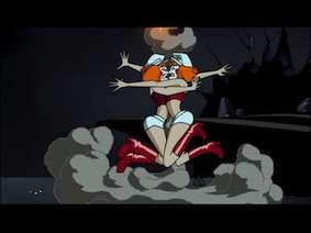 - Also happens with the main Mystery Inc team in Scooby-Doo And The Cyber Chase. Velma and her Video Game counterpart do this again later.