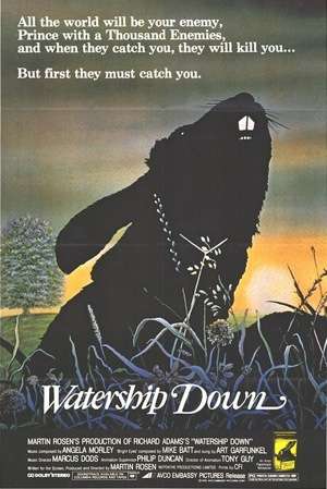 Also notable is the animated feature film based upon the book. It's a very well-done Adaptation Distillation, and while it is no excuse at all for not reading the novel, it's well worth watching. As a matter of fact, reading the novel first enhances the film. The Studio Ghibli-style insanely detailed animation fits the story perfectly, and real effort is made to respect the seriousness with which the rabbits take their quest. (As an aside, it's really hard to imagine a film version working any other way; if you'd like an idea of how Narm-ful a live-action version might have been, look for The Film of the Book Jonathan Livingston Seagull.) The film is also notable for its voice cast, consisting of some of the best British actors of the day, including John Hurt as Hazel, Ralph Richardson as the Threarah, Nigel Hawthorne as Campion, Richard Briers as Fiver and Zero Mostel as Kehaar.