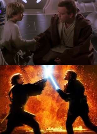 - Star Wars - Taken to the extreme in the third Episode of the Star Wars saga during the battle between Anakin and Obi-Wan.
