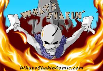 What's Shakin' is a fantasy webcomic by Shawn Tommelleo, creator of Coffin Comics. The story follows Coffinshaker, Nith, and Ell. Coffin, a born fire mage and last of his kind, travels with his two mage friends (ok, Nith is a battlemage, but close enough) to uncover a wicked plot to use his unique abilities to power the evil "fire god" Fred.
