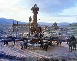 Mandatory torment of ancient and fantasy slaves. It's a giant capstan to which slaves are chained and made to drive in order to power some unseen machinery. In Fictionland, it seems, every slave-holding culture has this device. The most notable exception are the slaves held on plantations in the antebellum South of the United States.