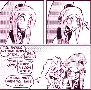 - The Cyantian Chronicles: Celina is typically scowling or straight faced, but she has one of the warmest smiles of all the cast.