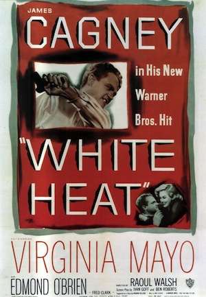 White Heat is a 1949 Warner Bros Film Noir directed by Raoul Walsh and starring James Cagney. Cagney is Cody Jarrett, the violent and emotionally unstable gang leader who still has a soft spot for his Ma. After pulling off a train heist, he gets arrested and convicted for a robbery he didn't commit (as part of an alibi he'd previously arranged). Waiting in prison until the heat is off, he's worried about Big Ed, his second-in-command, taking control of his gang and his (unfaithful) wife. When he hears Ed has killed his mom, an enraged Cody busts out, determined to rub out Ed and regain control of the gang. What he doesn't know, though, is that a trusted fellow con who escaped with him is really an undercover cop. It all comes to a spectacular finish during another heist, where Cody makes it to the top of the world...
