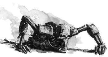 - Some pictures from Warhammer 40,000 show damaged Necrons crawling on their hands just like the T-600 in the picture above. Since their regeneration special rule is called "we'll be back", it makes perfect sense.
