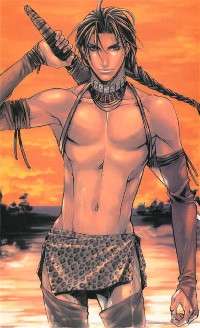 - Sensitive Guy and Manly Man: Yuuen is the small and pretty Non-Action Guy and Emba is the beefcake Hunter-Trapper with a big sword.