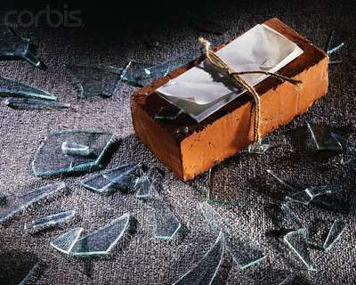 - A good guy pretending to be a bad guy will "accidentally" put a brick or a stone through a window to alert the authorities.