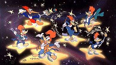 - Leitmotif: Parts of Woody's theme tune pop up throughout the cartoons. It even survived all the way up to The New Woody Woodpecker Show.