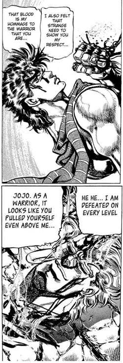 - Wham from JoJo's Bizarre Adventure. He's the only one of his group who has any semblance of a code of honor when it comes to combat and the only one to end up sharing mutual respect with Joseph Joestar.