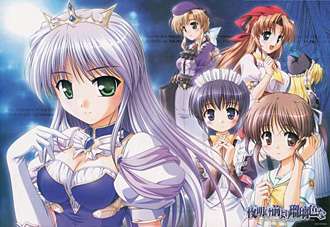 The fourth game of Visual Novel maker August Soft, it has several iterations, including the original X-rated PC game (simply Yoake mae yori Ruriiro na), a manga (same title) a PlayStation 2 adaptation (subtitled Brighter than Dawning Blue), an anime adaptation (subtitled Cresent Love), and an X-rated collection of side stories for the PC (subtitled Moonlight Cradle). Sentai Filmworks used the title Brighter Than the Dawning Blue for their English subtitled version of the anime.