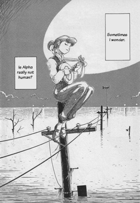 - Dropped a Bridge on Him: "Ojisan", a major character in the early series, vanishes without fanfare midway through the final volume. Even Alpha doesn't seem to notice, which didn't sit well with some readers. Although, since this happens right after a Time Skip, and we're shown his gas station overgrown with two unmarked graves beside it, it's likely that he died of old age some time before and she'd already shed her tears over him.