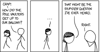 - In this xkcd: "Crap! How did the pole-vaulters get up to our balcony?"