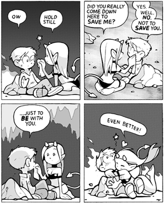 - Sinfest does this as literally as is possible. And lampshaded. And confided to Fucshia in an After-Action Patchup.