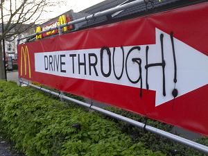- An American PSA had a guy who changes who to whom on some spray-painted wall graffiti.