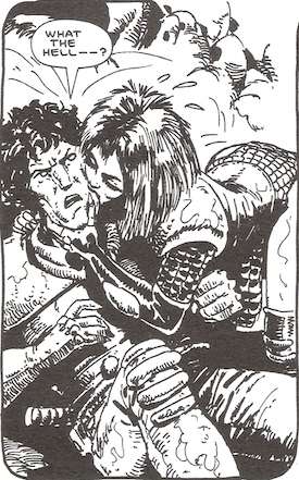- In Spawn, Clown/Violator licks Wanda's face with his demon tongue, exclaiming that she Tastes Like Chicken.