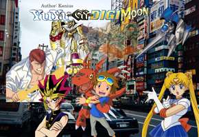 Ongoing since November 2003, YuYuGiDigiMoon is a Mega Crossover franchise by Kanius (who also writes Digimon Fusion Kai and Witchblade Sakura) featuring the characters of Yu Yu Hakusho, Yu-Gi-Oh!, Digimon, and Sailor Moon, as well as several Original Characters. Spans 3 "Seasons" (Season 3 currently ongoing, Season 1 currently being overhauled), 1 Side Story (short story featuring only 1 subgroup), 1 "Movie" (short(er) story featuring most of the cast), and a collection of Gaiden short stories, including a "Special Gaiden" released as a separate story, and now an OVA and a three-fan-continuity crossover.