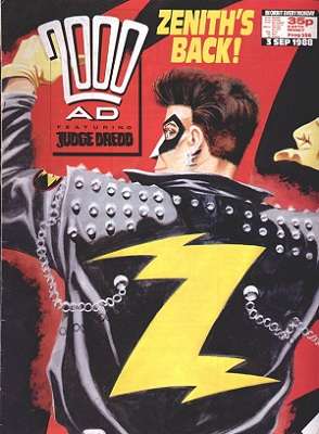 A Superhero Deconstruction comic created by Grant Morrison and Steve Yeowell. Zenith follows teen superhuman turned pop star Robert MacDowell, more popularly known as his stage name "Zenith" or "Superbrat" to the press. Superficial and spoilt rotten, Zenith is recruited by the previous generation of superhumans to fight against the Lloigor. Unfortunately, as cowardly and inept as he is, Zenith is mostly reduced to being a supporting character in his own comic.
