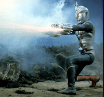 The show sadly had a very short run (so short that making a paragraph on the series as a whole can't be done, or can it?) thanks partly to the 1973 oil crisis and partly due to low ratings. The show has also been criticized for being a "rip off" of the long running Ultraman. The show is most famous for having Toho's Godzilla, Gigan, and King Ghidorah making guest appearances on the show. That's right, that Godzilla. The show has many campy moments since it was aimed at kids. Despite this camp however the show could be surprisingly violent for a kids show. You haven't lived until you've seen Zone Fighter rip out a monster's eyes, cut off its arms, shoot off its head, and then fly its corpse into space just for cheating in ring toss. There's a lot of Monster of the Week so you'll rarely see the same kaiju twice, especially given what happens to said monster.