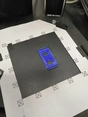- Take a picture of the failed part on the bed (as high resolution as possible; black square X-markers should be visible in your picture; try to avoid significant light reflections)