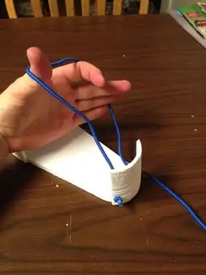 Take the remaining bungee cord and tie a knot in one of the ends.