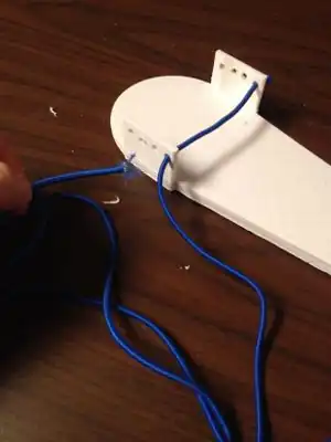 Begin in one of the bottom holes of the ankle support and thread the hole, pulling until the knot hits the substrate.