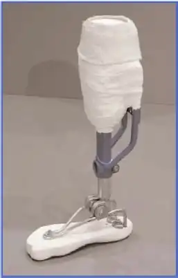 Adults require prosthesis replacement approximately every 1 to 2 years, while children usually require more frequent replacements of approximately every six months. This prosthetic for children was designed so that the prosthetic is adjustable (creating a longer useful life of the prosthetic), and it is made from local materials. The limb is constructed from local bicycle components, either new or used. The seat post and part of the frame are inverted and bolted to a foot shaped board. The fitting of the limb is accomplished by creating a cast of the limb and then attaching it to the bicycle component. The casting materials can be made from local materials, such as elephant grass, in some cases (Strait 2006). The total cost of the materials for the prosthetic is estimated to be around $20 USD. Purchasing a used bike frame and seat post would cost in the range of $5-$15. The wood for the foot would cost less than $1, and it could be lined with rubber from car or bicycle tires. If orthotic bandages were used, one to two rolls at $5 would be needed, but cheaper local resins or cellulose-rich plants could possibly replace this cost (ibid).