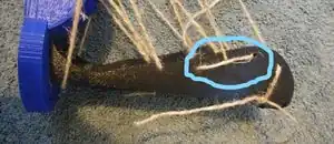 Wrap the string around the back of the leg to the closest hole on the right-hand side of the foot part.