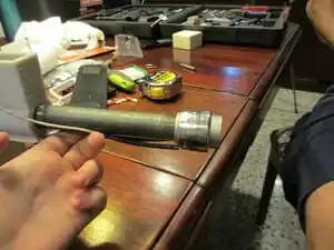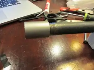 Now find the barrel and one of the nipples. Screw the barrel into the nipple gently and tighten with a wrench on the cut out section. Be careful not to deform the nipple.