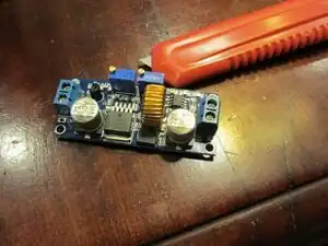 Look for the two blue boxes on the top of the board with two little screws on top. Look carefully under the boxes to see which is CV and which is CC. Rotate the CV screw counter-clockwise till you hear a click (a few dozen rotations). Once it clicks rotate it clockwise for 15 rotations. Do the same with the CC screw but only rotate it clockwise for 6 rotations.