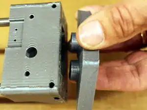- With the tip of the precision knife, ream the small holes in the idler ends where the screws secure the limit switches. This makes starting the screws much easier, but don't get carried away. Prepare six M2 x 12 mm socket head cap screws with M2 flat washers on them. The limit switches are both screwed and epoxied to the idler ends, so having the screws ready to go helps since celerity is required to get the switches in place before the epoxy cures. Note that the switches are positioned such that the tab is facing the nearest guide rod (see picture). Mix a small amount of plastic epoxy and smear a thin layer on the side of the switch mating with the idler end. Secure the epoxied switch in place with a pair of M2 screws.Attach limit switches.