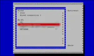 nmtuiinterfacesudo nmtuiand select "Activate a connection" using the arrow keys and enter key. - Select the WiFi network of interest (ex. NETGEAR, LINKSYS...) . Enter the network key if necessary.