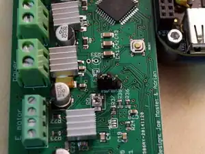 - Set the shorting block so the VREG pins are shorted as shown in the picture.The Melzi power source jumper is in the middle of the board.