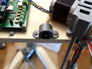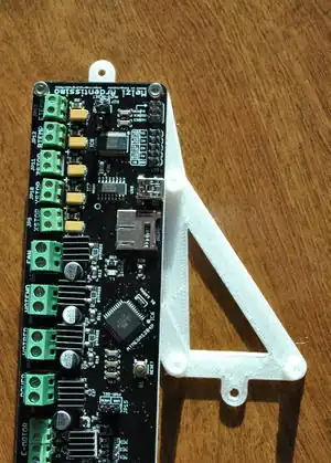 - Mount the small electronics mount to the opposite end of the Melzi controller board with a pair of M3 x 6mm screws. Tighten the screws.Mount the small electronics mount to opposite end of Melzi board.