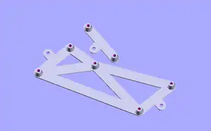 Carriages snap onto LM8UU linear bearings and are attached to a drive belt by a screw passing through the carriage web and a printed fixed belt terminator that is attached to one end of the GT2 drive belt. A pair of high strength neodymium ring magnets serve as sockets for steel ball bearings that are affixed to aluminum connecting rods, forming a low friction, large angle ball joint. The carriages move vertically on tool steel guide rods and engage the limit switches via a screw threaded into the tops of the carriages. | 3 |