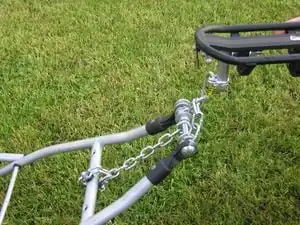 When bicycling uphill pulling a load of 20 lbs, there was a lag between the trailer and the bike. Consequently the trailer pulls back slightly.I found that a simple bungie cord eliminates this problem. Unfortunately it caused the trailer to hit the rear tire, which was not previously a problem. Thus, I removed the bungie cord and am still trouble shooting ideas to prevent the lag.