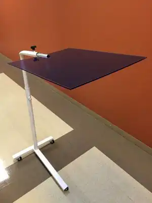 NeoTech Global's BiliSol Phototherapy System uses sunlight to treat jaundice, while offering protection from the harmful UV rays of the sun. Blue tint is applied to an acrylic sheet to filter sunlight and deliver therapeutic treatment. The filter is attached to an height adjustable stand and mobile base. The system is cost-effective, does not require electricity to operate, and does not need replacement parts.