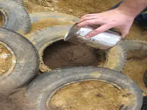 Members of CCAT informed us that they only plant non-edible seeds. According to them, sunlight reacts with rubber and toxic components may be released to the roots.
