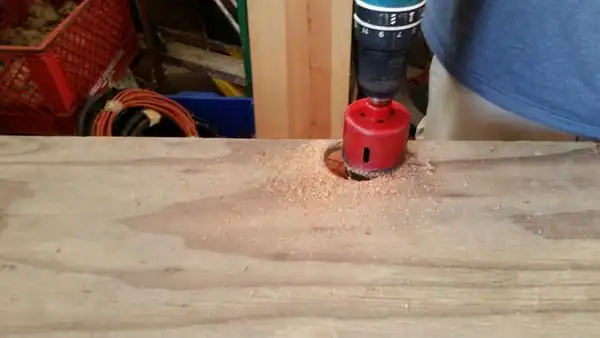 Step 5:Set wood where the new battery location is going to be, mark the wood where the drill holes need to be and drill through both the plank of wood and trailer floor. |