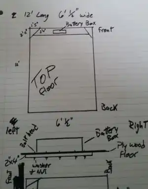 Step 1:Draw preliminary sketches of battery case with dimensions and battery case being reattached to the trailer. Discuss with clients what is allowed to happen to the trailer and clear construction. |