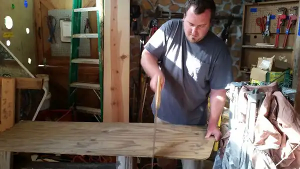 Step 4:Cut wood planck to correct length that will hold the battery case in place. |