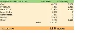 Since the panels were manufactured in the US and they comprise the bulk of the embedded energy, it is assumed that all embedded energy is from US 2007 grid electricity[5] Furnaces were used throughout the process(not accounted for in embedded energy), which is more efficent, and thus, should compensate for the components likely made in China to make a reasonable estimate.