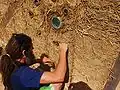 Very little has been done to this wall as well as the Cob wall. It was decorated with Earthen Plaster but because of the teams research and preparation was so thorough, there has been little to no maintenance done on the wall. So advice from one of the Co-Directors was to take your time. Because it's going to take a long time anyway, it's better to do it right the first time then to have to spend more time having to re-do some aspect of the project.