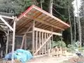 There was an existing frame built for the Greenshed by CCAT employees. There were three walls which needed to be filled in. For the south wall, cob was chosen, the north, cordwood and mortar, and our west with clay-straw slip. Each of these materials were chosen for their abilities to either store or resist heat, as well as durability in our moist climate.