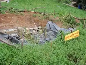 Fig 7a: To begin end use renovation, removing the rocks and water from the area after the last baffle was necessary