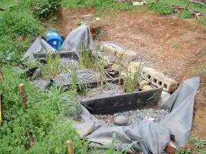 Fig 3c: Section of settling tank (tank #2), the treatment marsh, and the water testing tank (tank #3).