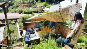 CCAT volunteers and co-directors frequently deal with dirty hands and muddy shoes from working outside. Typically, they use the outdoor hose to rinse their shoes, causing flooding and mud build-up in traffic areas. The use of solar heated shower was thought to be the solution to this problem, but was soon realized to be infeasible. The solution to this problem was inspired by the solar heated shower called outdoor solar heated sink. This solution was found feasible due to the availability of materials for a sink washing station.