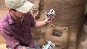 Straw Slip Insulation against bottom foundation- rice straw added to a mixture 4:1 of clay and water.